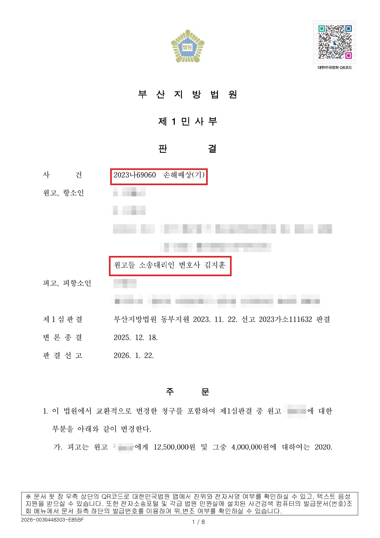 대부중개업법 손해배상청구 항소심 승소