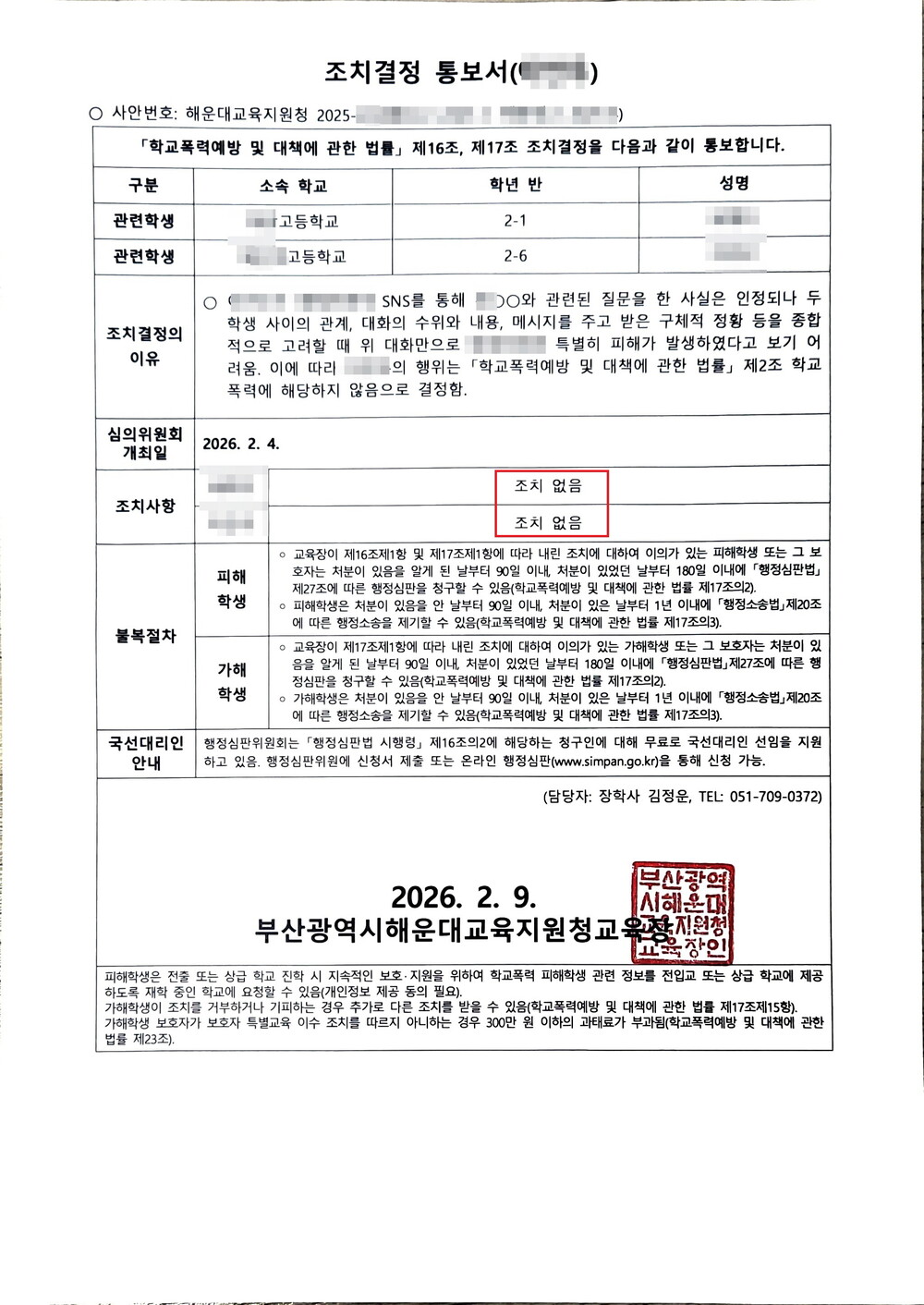 ■ 사건의 개요: 평범한 일상을 뒤흔든 한 통의 신고 부산의 한 중학교에 재학 중인 남학생 C군은 평소 절친했던 여학생 D양과 SNS로 일상적인 대화를 나누던 중, D양의 과거 이성 교제 관계에 대해 가벼운 질문을 2회 가량 던졌습니다. 하지만 얼마 뒤, C군은 '성적 수치심 유발' 및 '사이버 불법 정보 유통' 등의 혐의로 학교폭력 신고를 당하게 되었습니다. 친밀함의 표시였던 대화가 순식간에 학교폭력이라는 칼날이 되어 돌아온 절체절명의 상황이었습니다. ■ 위기 상황: 낙인 효과와 억울한 징계 위기 최근 학교 현장에서는 SNS 대화 내용 중 성적 맥락이 조금이라도 포함될 경우, 매우 엄격한 잣대를 적용하는 추세입니다. C군 역시 자칫하면 '성희롱' 계열의 무거운 징계를 받고 생활기록부에 영구적인 기록이 남을 위기에 처했습니다. 무엇보다 평소 가깝게 지내던 친구로부터 신고를 당했다는 정신적 충격이 매우 큰 상태였습니다. ■ 법률사무소 중명 김지훈 변호사의 치밀한 조력 대화 문맥의 재구성: 단순한 질문 2회만 떼어놓고 보면 오해의 소지가 있을 수 있으나, 중명은 사건 전후 수개월간의 전체 대화 내역을 분석했습니다. 이를 통해 해당 질문이 공격적이거나 비하하려는 목적이 아닌, 평소의 친밀한 대화 패턴 속에서 자연스럽게 나온 것임을 입증했습니다. 학교폭력 성립 요건의 법리적 반박: '학교폭력예방 및 대책에 관한 법률'에서 규정하는 학교폭력의 핵심인 '고의성'과 '해악의 고지'가 결여되어 있음을 명확히 했습니다. 특히, 대법원 판례와 유사 하급심 판결 사례를 인용하여 "단순히 상대방이 불쾌감을 느꼈다는 주관적 사정만으로는 학교폭력이 성립될 수 없다"는 논리를 구축했습니다. 증거 기반의 의견서 제출: 여학생 측이 주장하는 피해 사실이 객관적 사실과 다르다는 점을 입증할 수 있는 주변 친구들의 진술과 SNS 로그 기록을 증거로 제시하며 심의위원들을 설득했습니다. ■ 결과: 정의로운 결말, '조치 없음(무혐의)' 부산 교육지원청 학교폭력대책 심의위원회는 법률사무소 중명의 주장을 전적으로 수용하였습니다. C군의 행위는 학교폭력의 개념에 해당하지 않는다는 판단 하에 '조치 없음' 결정을 내렸습니다. 억울하게 가해자로 몰렸던 C군은 어떠한 징계 기록도 없이 다시 평온한 학교생활로 돌아갈 수 있었습니다.김지훈 변호사의 한마디: "학교폭력은 피해자의 주관적 느낌도 중요하지만, 법적 기준에 따른 '객관적 사실관계'가 우선되어야 합니다. 억울하게 가해자로 지목되었다면 당황하지 말고, 초기 단계부터 논리적인 법리 대응으로 내 아이의 명예를 지켜줘야 합니다. 중명이 그 방패가 되어드리겠습니다."#부산학교폭력변호사 #부산학폭무혐의 #부산교육청학폭위 #학교폭력조치없음 #김지훈변호사 지금 바로 김지훈 변호사와 1:1 상담하기(051-917-6595)