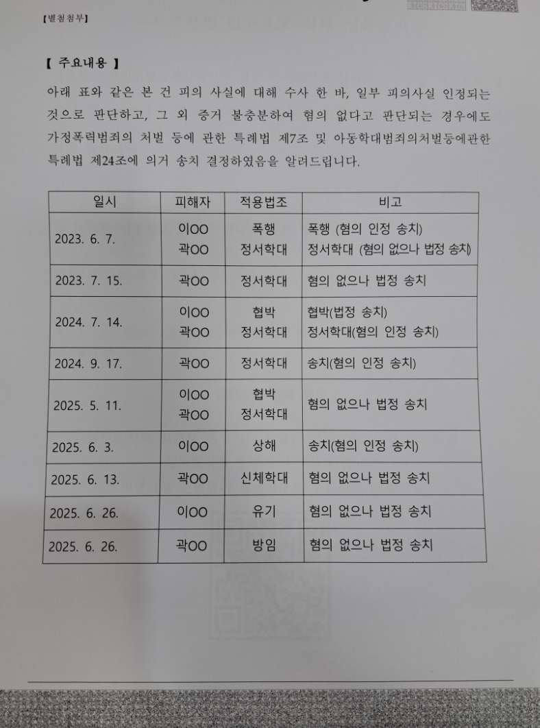 아동학대(정서적학대)로 고소당한 사건에 관하여 무혐의로 불송치 결정을 받아냈습니다.