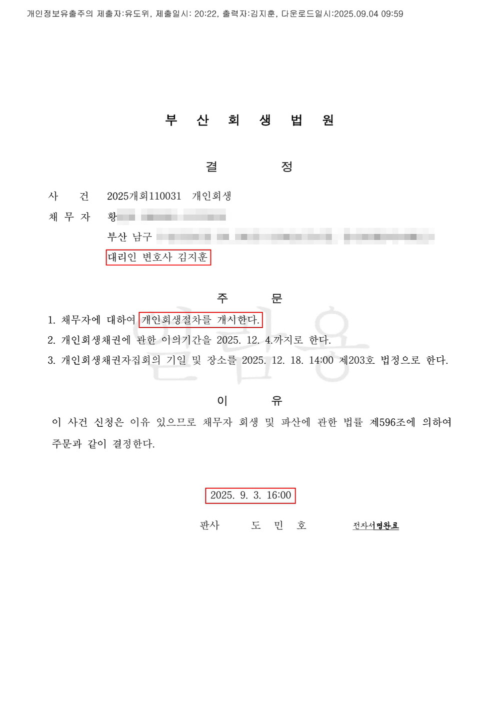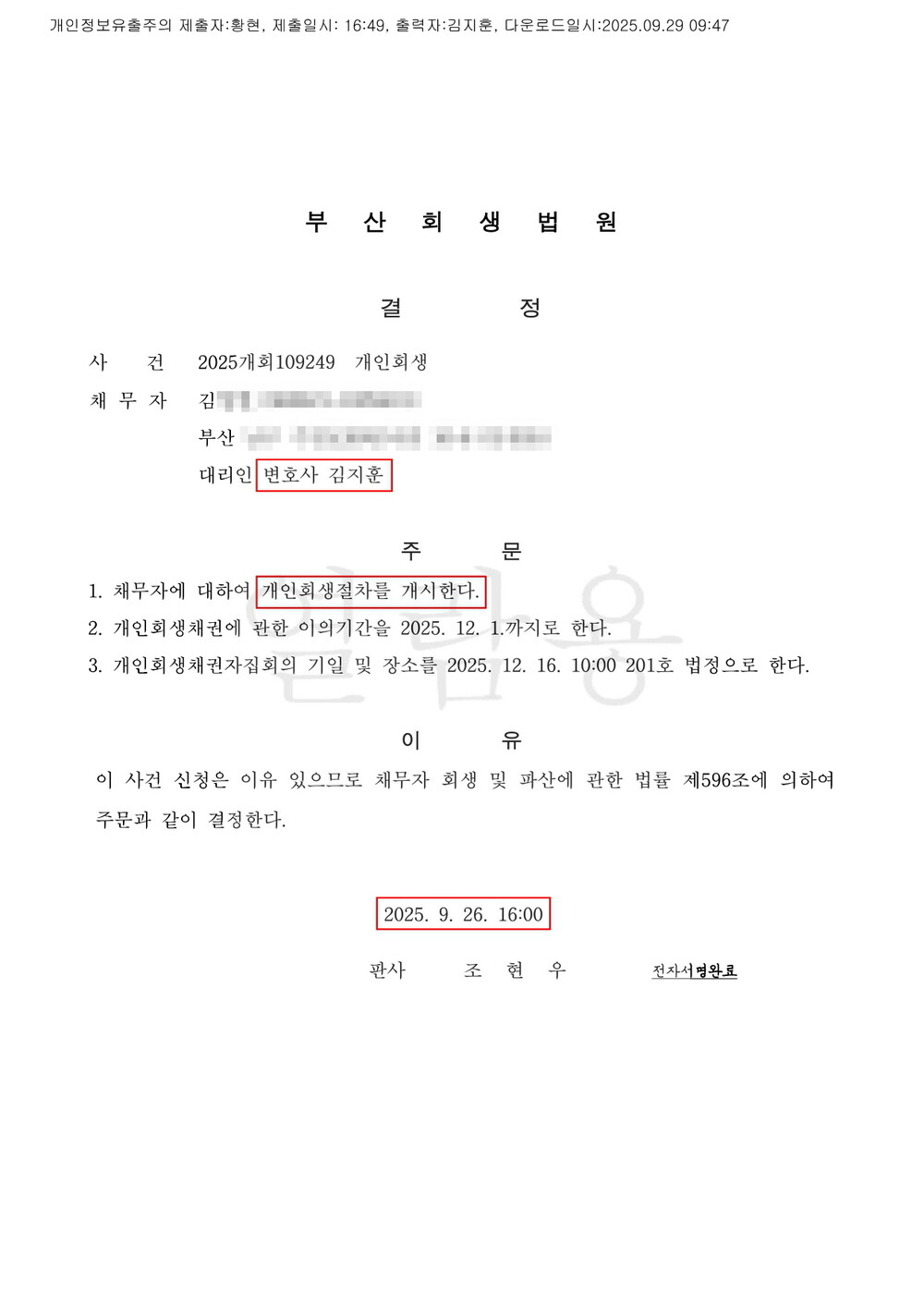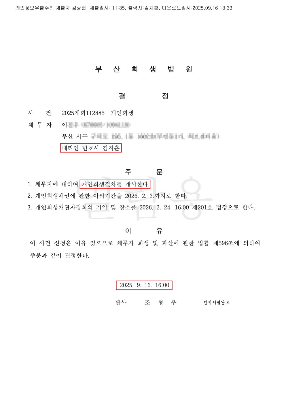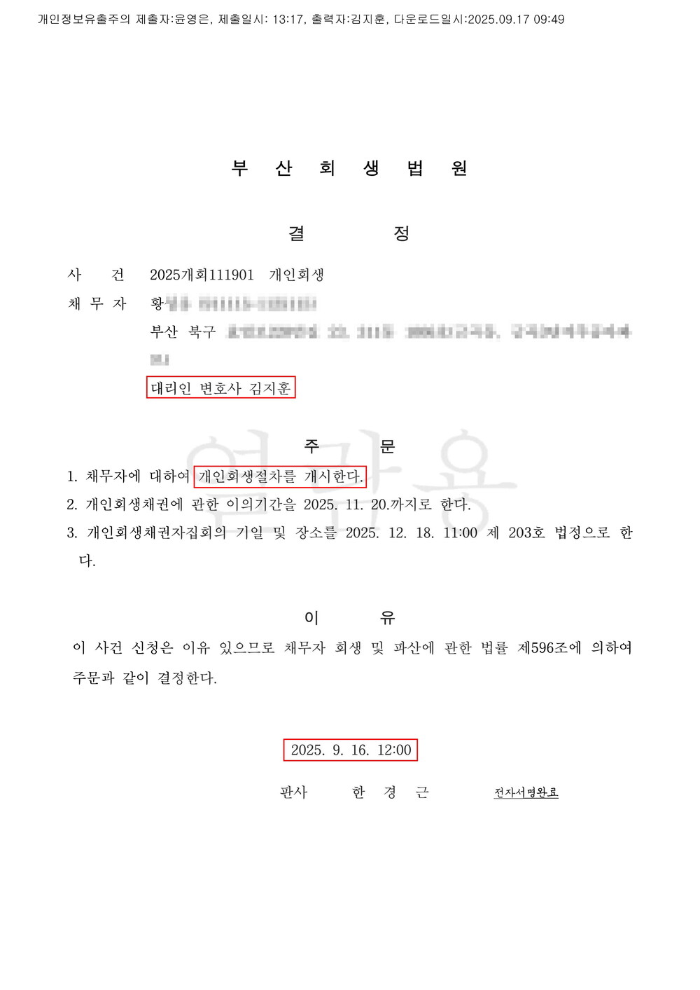 위와 같은 프로세스를 거쳐 개시결정이 나고, 그 이후 충실히 월변제금을 납부하신다면 이제 인가결정이 나게 됩니다.